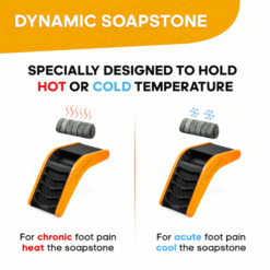 Soapstone was specifically selected as the semi-triangular and removable centerpiece of the HighHealer because it provides soothing relief to inflamed tissue on the foot with its ability to hold hot and cold temperatures for at least the duration of the exercise.